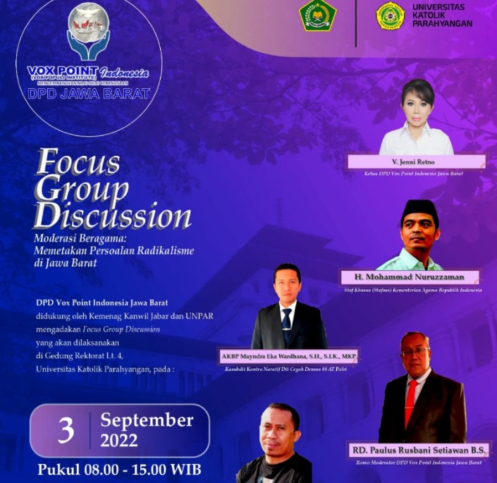 Vox Point Indonesia DPD Jawa Barat Gelar FGD Moderasi Beragama