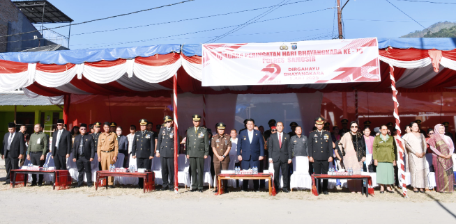 Samosir, TERBITINDO.COM – Bupati Samosir Vandiko Timotius Gultom, ST bersama jajaran Forkopimda menghadiri Upacara Hari Ulang Tahun (HUT) Bhayangkara ke-79 yang digelar di Tanah Lapang Pangururan pada Selasa, 1 Juli 2025.